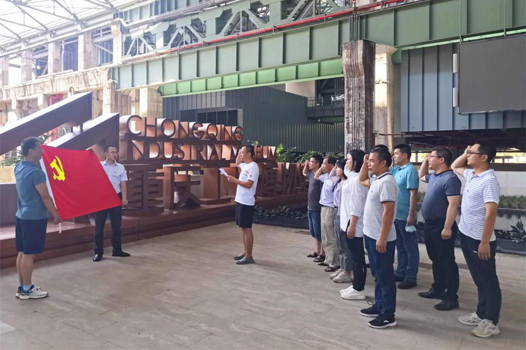 第一黨支部以“強國復興有我 行動踐行使命”為主題,組織黨員走進重慶工業博物館,重點學習了近代以來重慶工業120多年發展歷程、重慶工業的振興,以及重慶工業為中國抗戰、國民經濟恢復、重慶城市化進程、中國工業化進程做出的重大貢獻。期間,黨員們還面對黨旗重溫了入黨誓詞。
