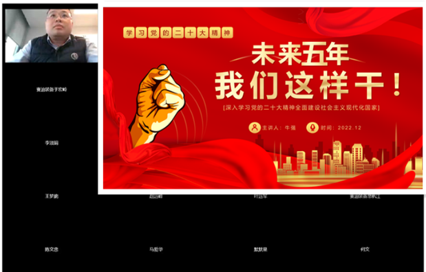 11月5日,裝備公司黨委召開傳達學習貫徹黨的二十大精神工作部署會議,學習黨的二十大報告精神,部署學習貫徹工作,要求把學習貫徹落實黨的二十大精神作為做好今年四季度和明年各項工作的根本遵循,集全員智慧與合力推動公司轉型發展。賽迪裝備黨委下屬三個黨支部迅速掀起學習熱潮,除“三會一課”、主題黨日等抓好原文學習外,利用學習強國、智慧黨建五礦網上黨校等平臺開展“線上+線下”學習,班子成員開展主題宣講,黨員干部帶頭交流心得體會,截至12月底,公司各載體共發布黨員、群眾、青年心得體會50余份。